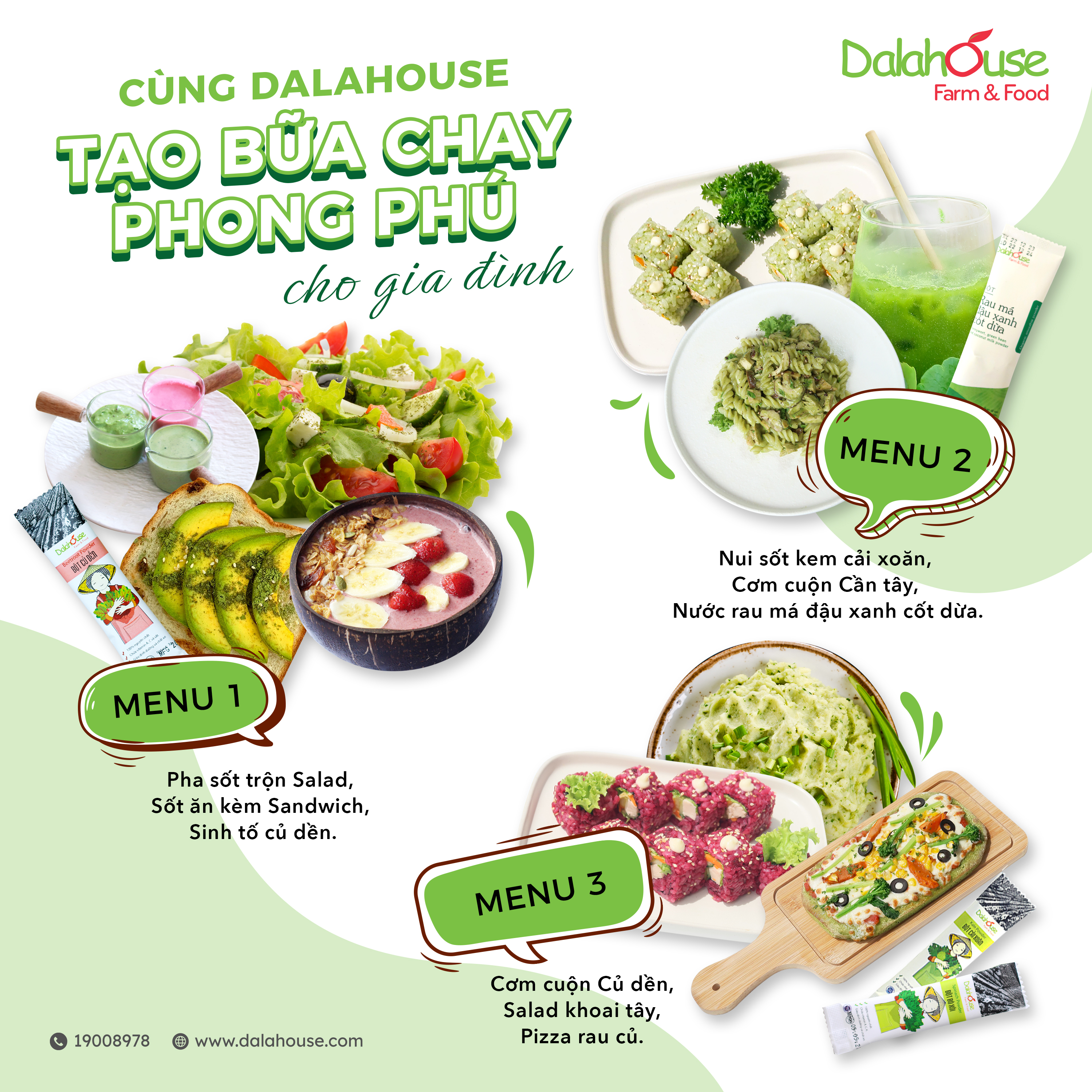 Gợi ý menu các món ăn chay được sáng tạo từ bột rau củ hữu cơ Dalahouse