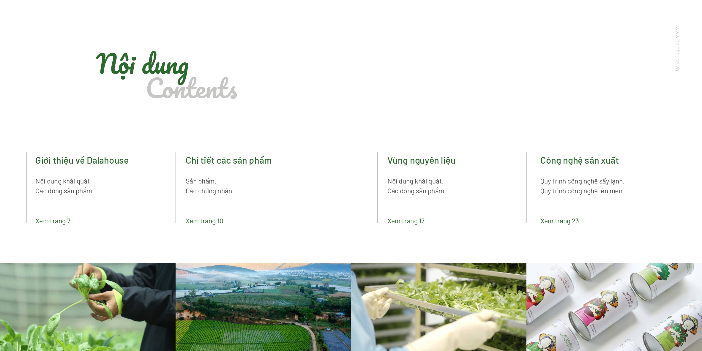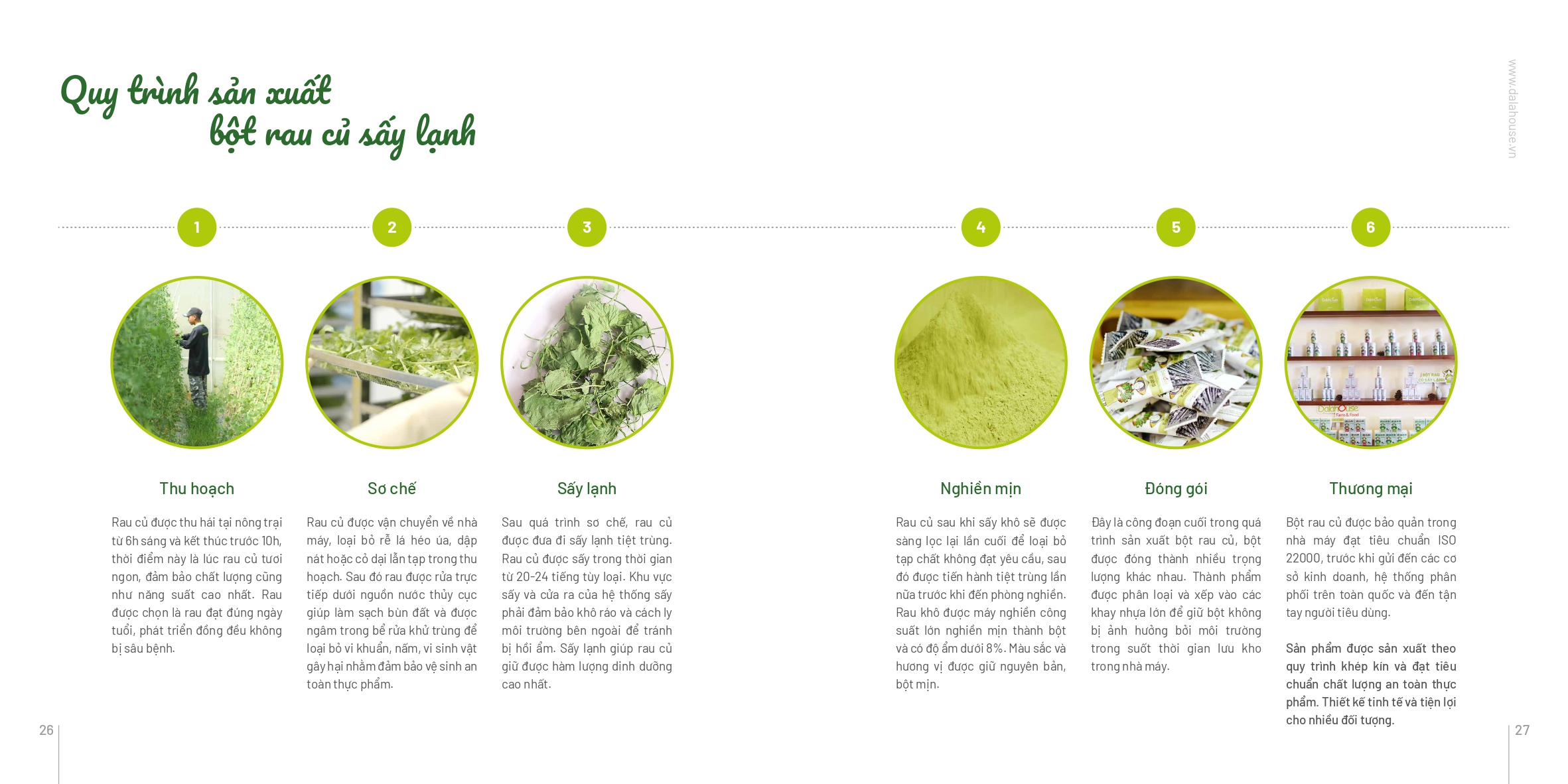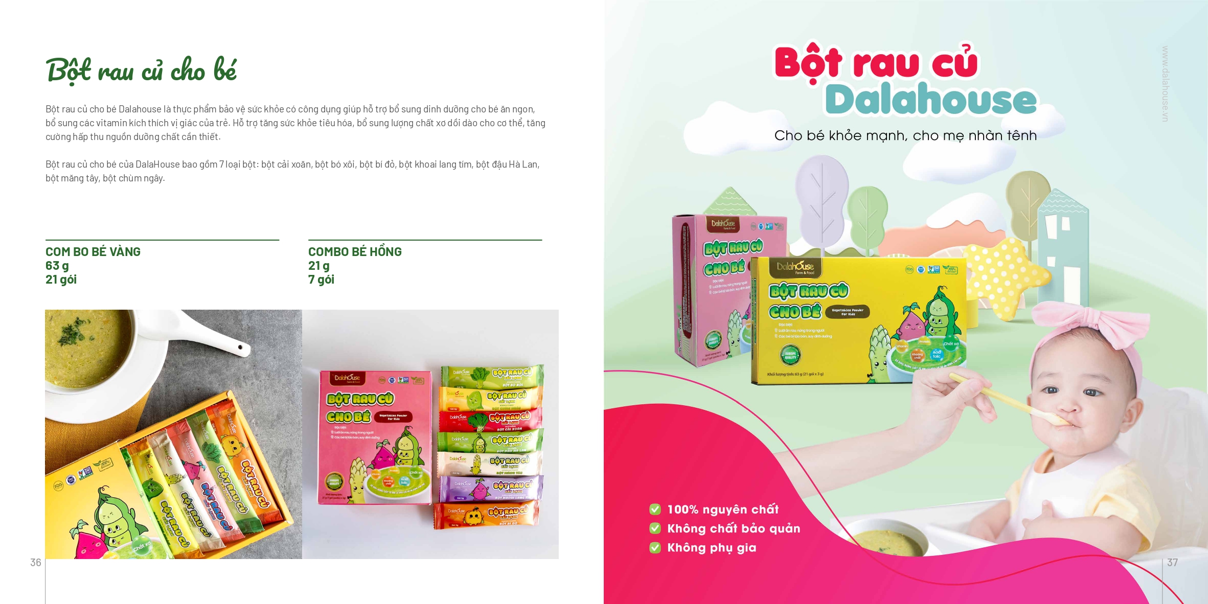 Bột rau củ Dalahouse là dòng sản phẩm bột rau củ hữu cơ, sấy lạnh từ vùng nguyên liệu sạch Đà Lạt, đạt các chứng nhận quốc tế như USDA, EU, FDA, và ISO. Sản phẩm giữ nguyên hàm lượng dinh dưỡng, giàu chất xơ và khoáng chất, thích hợp cho người ăn kiêng, hỗ trợ thải độc và tăng cường sức khỏe.
