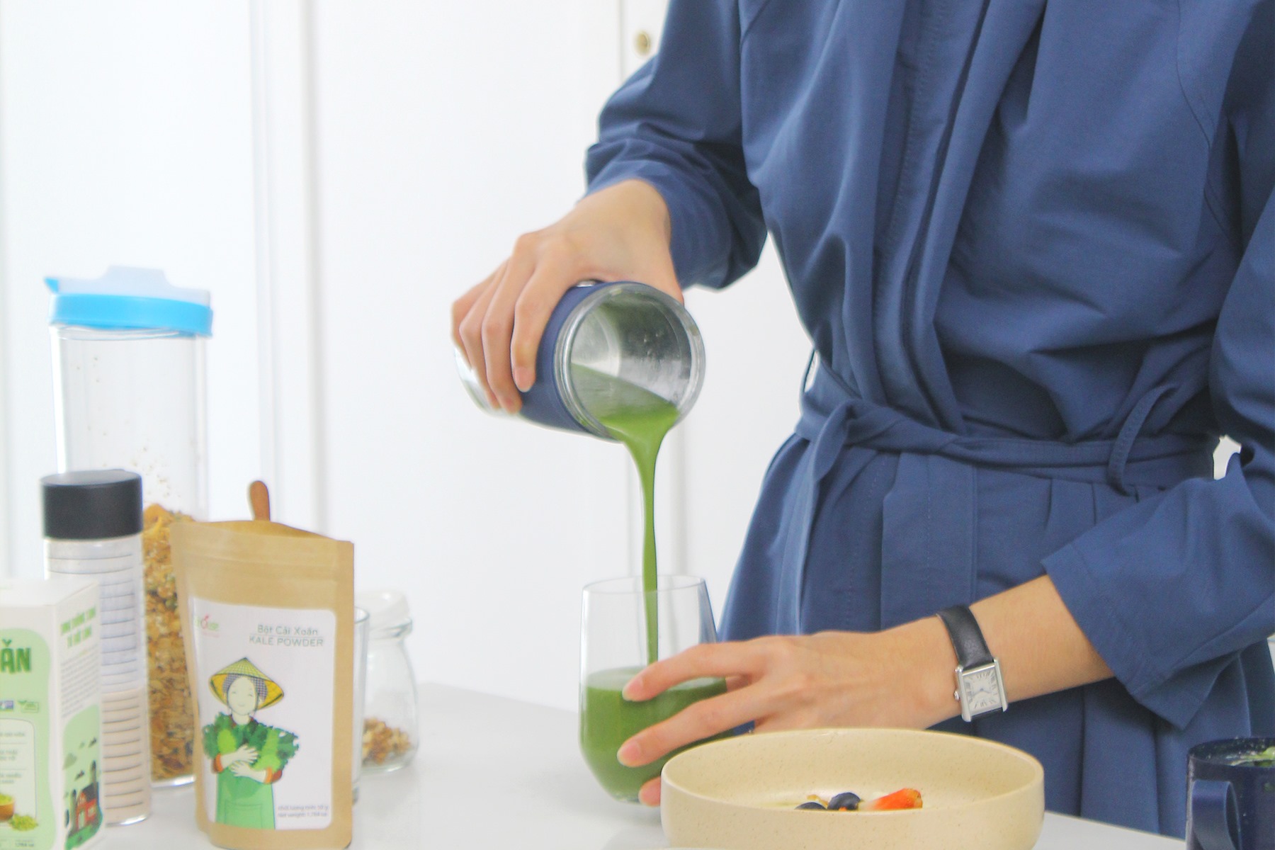 Ngoài ra nếu bổ sung bột rau xanh vào những ngày này sẽ giúp tâm trạng bạn cảm thấy thoải mái, lượng chất xơ dồi dào trong bột rau xanh sẽ giúp đào thải độc tố tích tụ trong cơ thể giúp cơ thể nhẹ nhàng, trông bạn sẽ tràn đầy sức sống và mang trên mình một nguồn năng lượng tích cực.