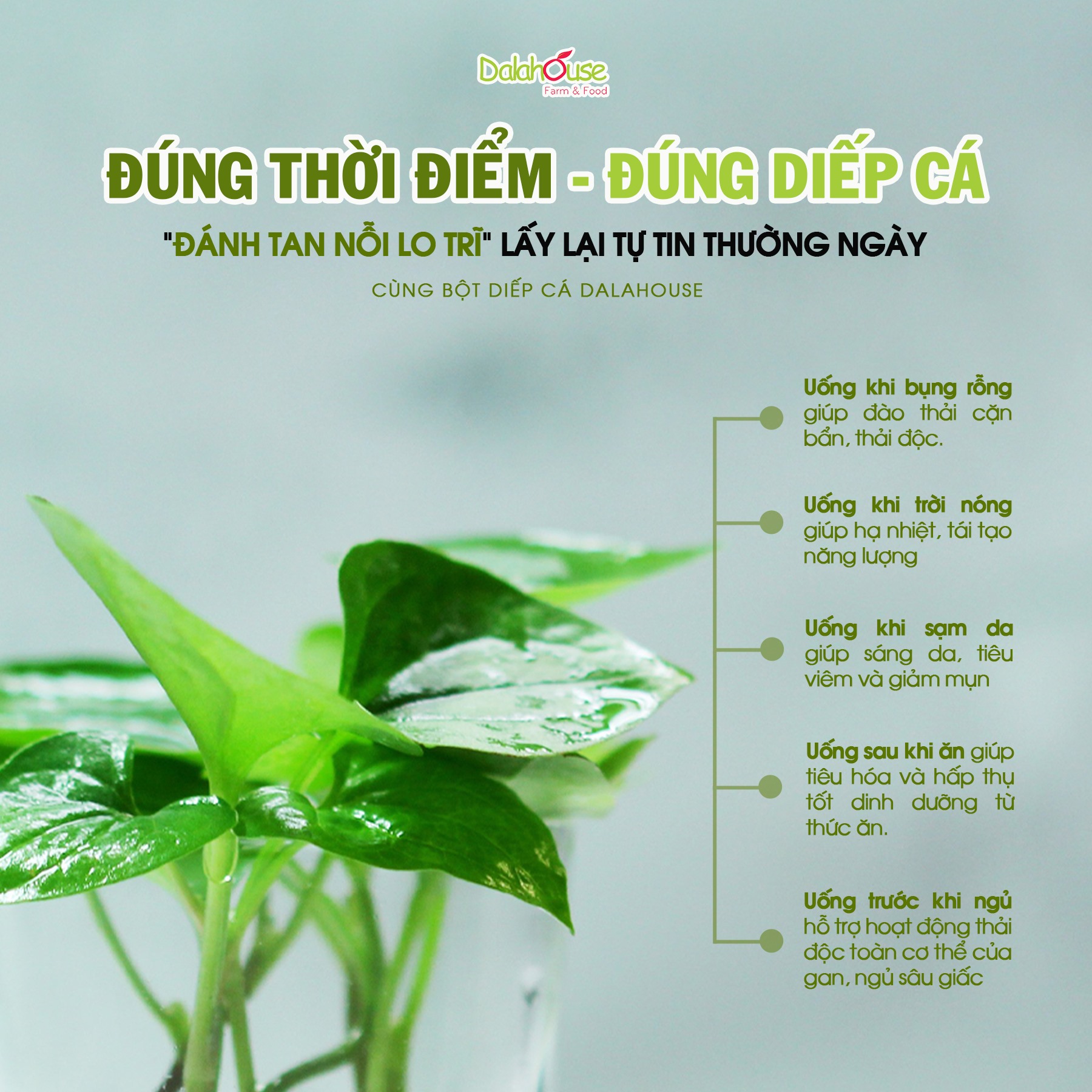 Sử dụng bột diếp cá Dalahouse pha nước uống mỗi ngày 1 ly vừa giúp giải độc gan vừa làm lành vết thương trong miệng mang lại sự cân bằng cho cơ thể và cuộc sống của bạn.