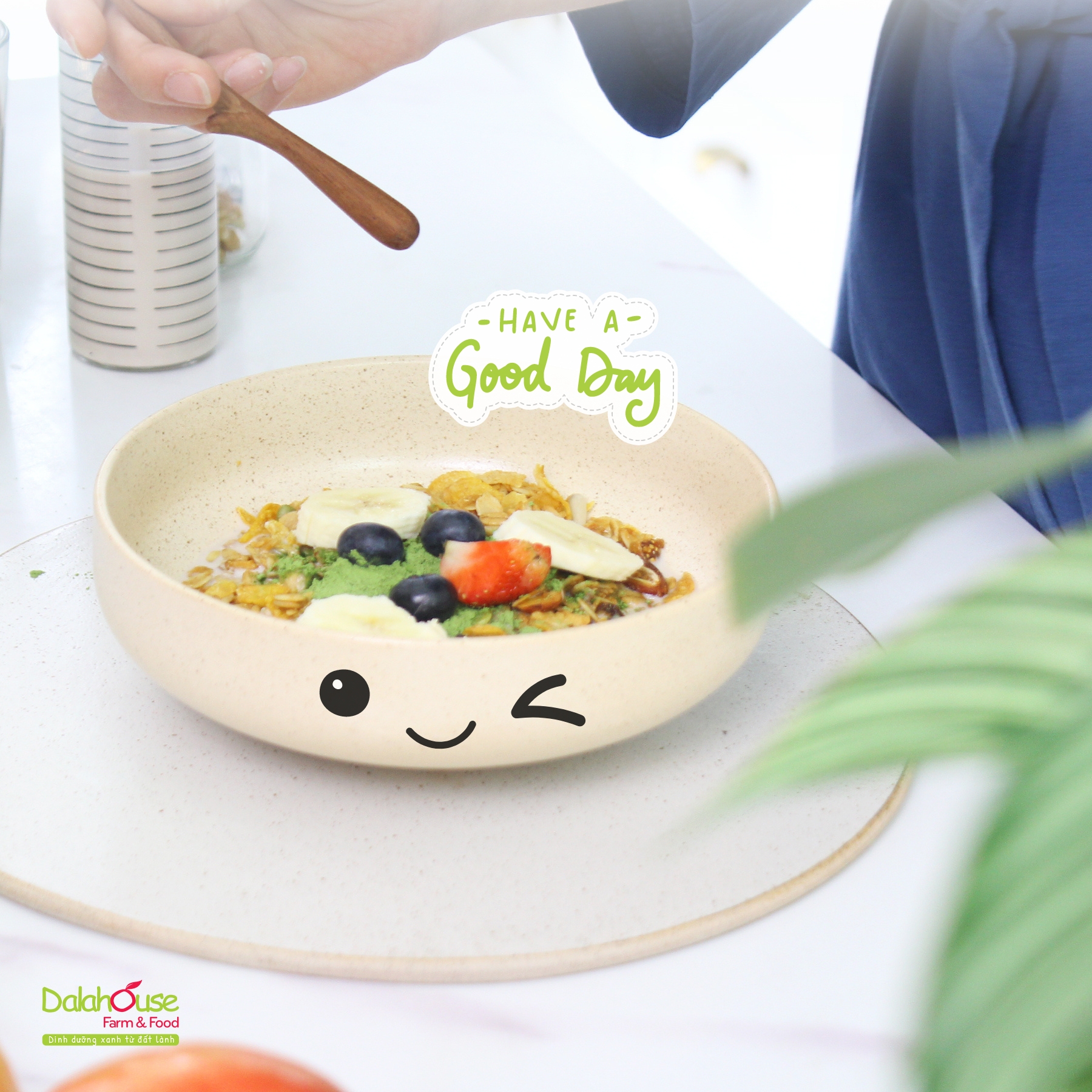 Ăn sáng ngũ cốc mix sữa chua, trái cây và bột cần tây Dalahouse