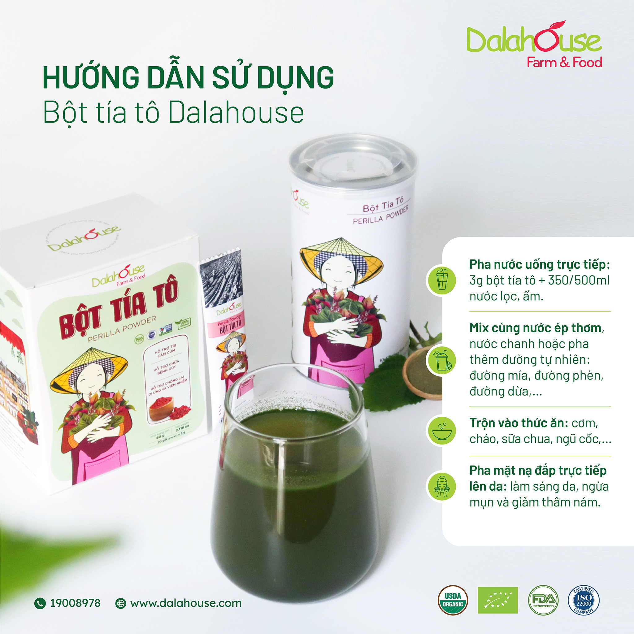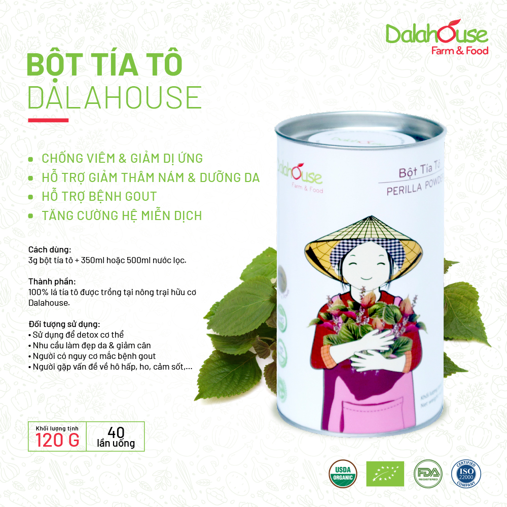 - Bột tía tô hữu cơ sấy lạnh Dalahouse giữ được trên 90% dinh dưỡng, có thể thay thế rau tía tô tươi, dễ bảo quản và tiết kiệm thời gian hơn khi sử dụng.