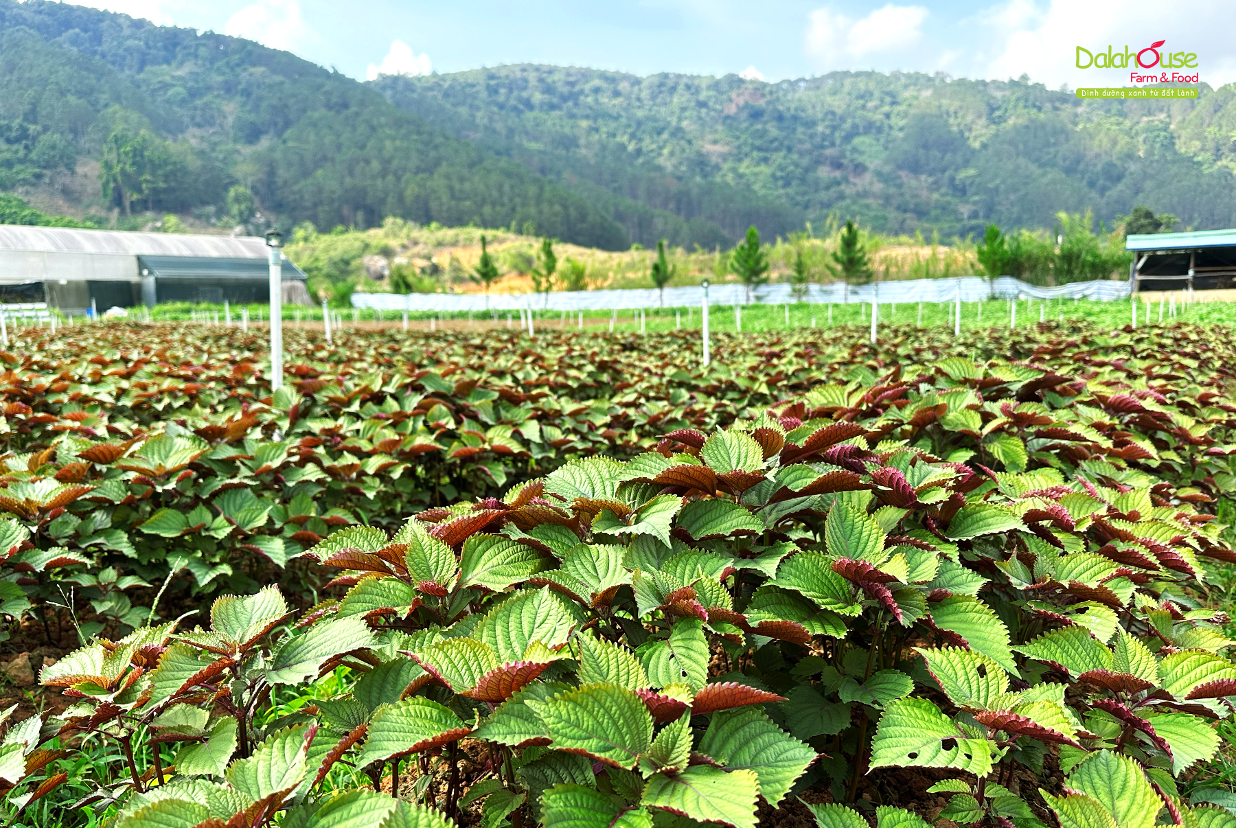 Nông trại trồng tía tô hữu cơ của Dalahouse nằm dưới chân núi cao nguyên Lâm Viên