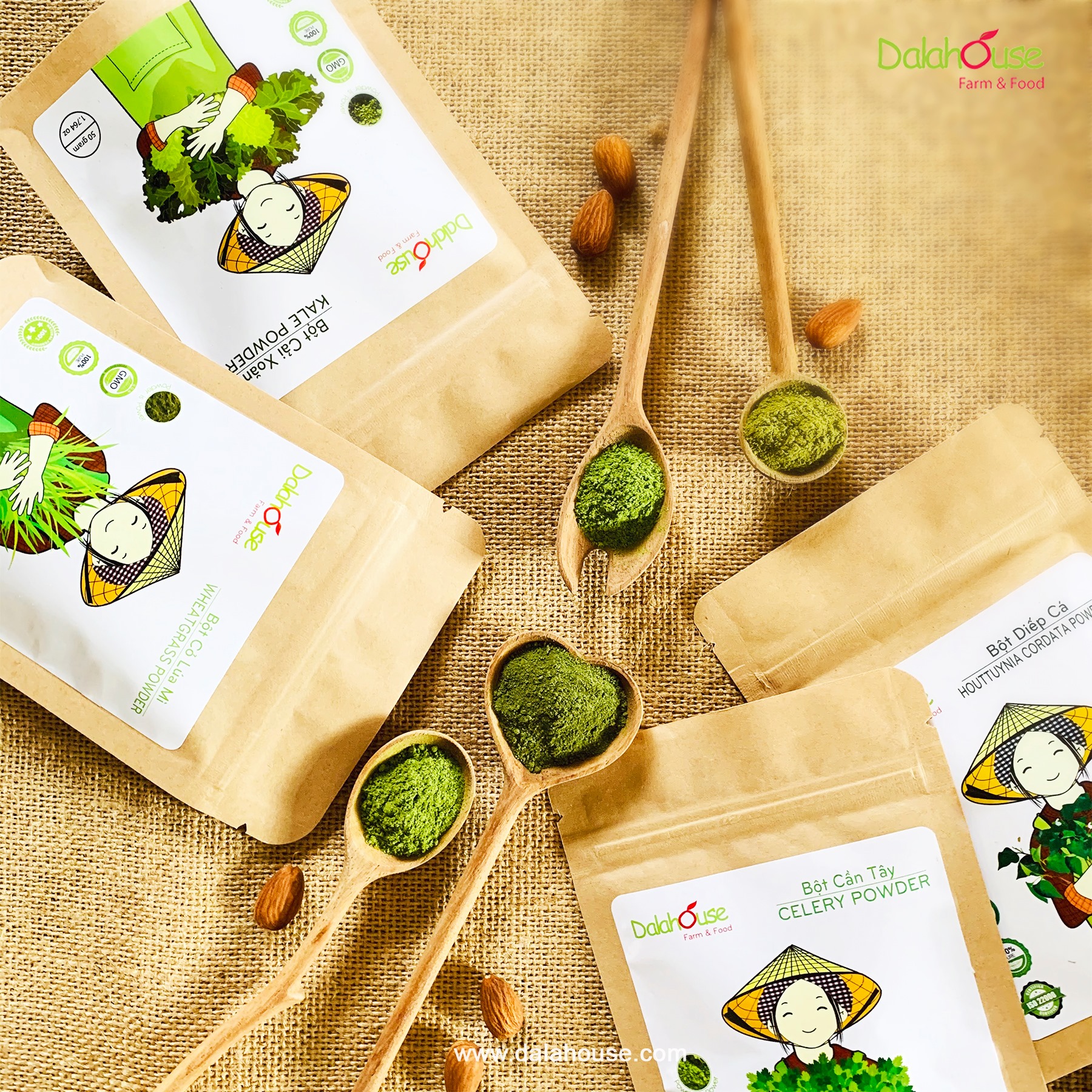 Bột rau xanh của Dalahouse được chế biến bằng công nghệ sấy lạnh Châu Âu ; nguồn nguyên liệu được trồng trọt theo hướng hữu cơ; sản phẩm đóng gói cẩn thận để bảo quản bột rau xanh tốt hơn; đạt được chứng nhận FDA của Mỹ.