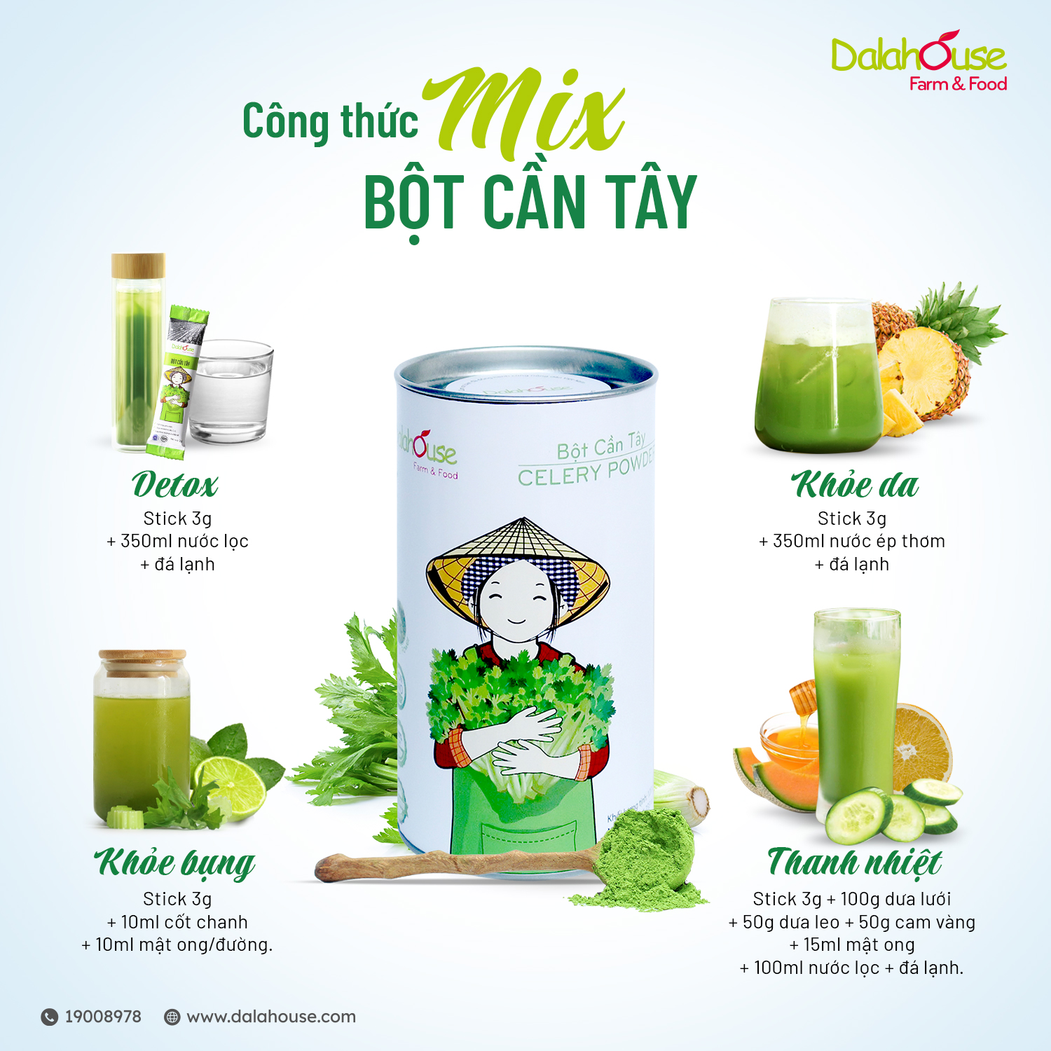 Hướng dẫn mix bột cần tây Dalahouse để giữ dáng và khoẻ da