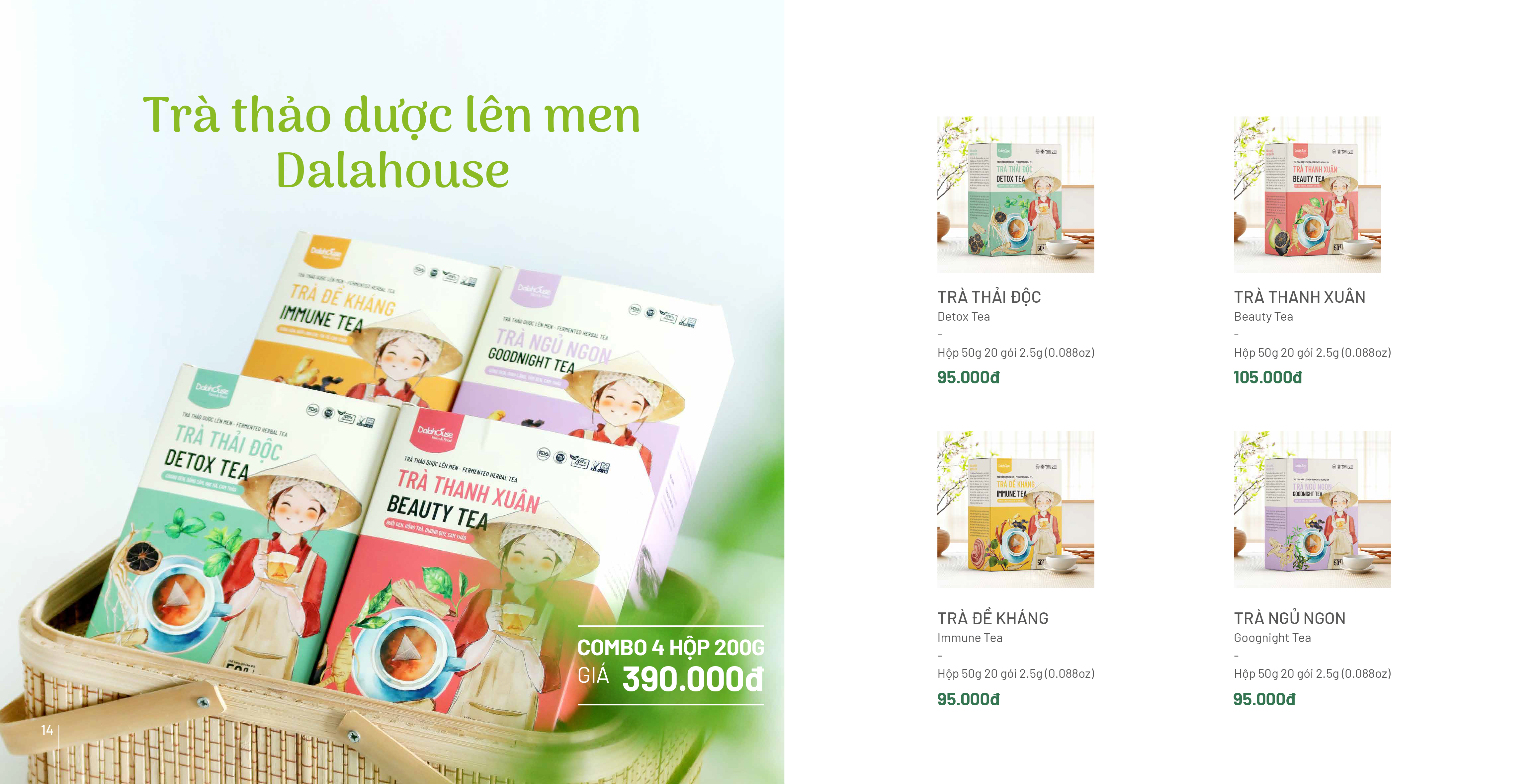 Trà thảo dược lên men: gồm 04 dòng trà như trà thải độc, trà đề kháng, trà ngủ ngon và trà thanh xuân.