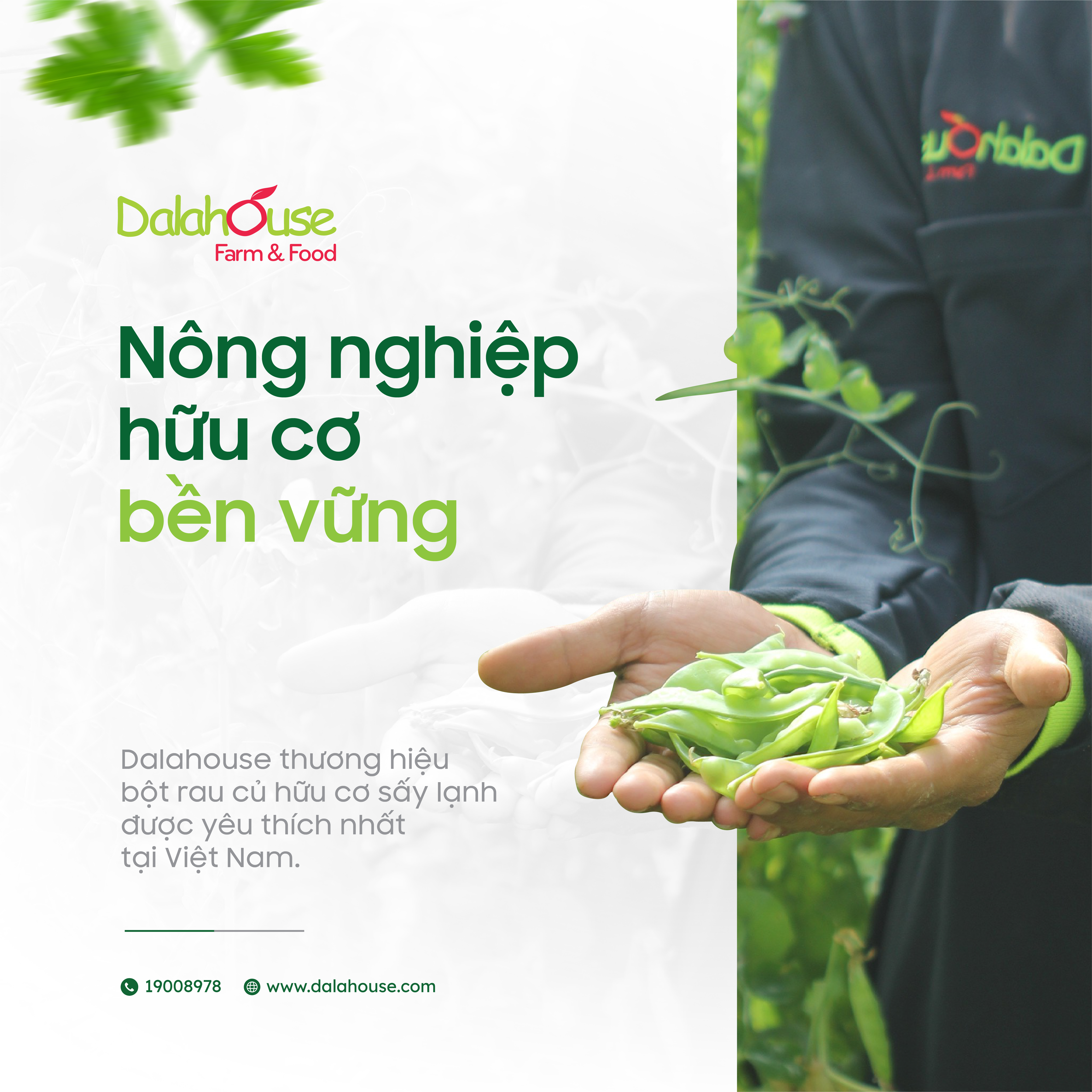 Dalahouse xây dựng chuỗi giá trị nông nghiệp hoàn chỉnh từ trồng trọt - sản xuất khép kín nhằm tự chủ và kiểm soát được vùng nguyên liệu, chất lượng sản phẩm. Xây dựng nông trại theo tiêu chuẩn hữu cơ để phục vụ cho sự ra đời của các loại bột rau củ hữu cơ đúng chuẩn. Áp dụng công nghệ sấy lạnh để giữ lại tối đa giá trị dinh dưỡng, hàm lượng chất xơ, màu sắc và mùi vị tự nhiên từ các loại rau củ thiên nhiên.
