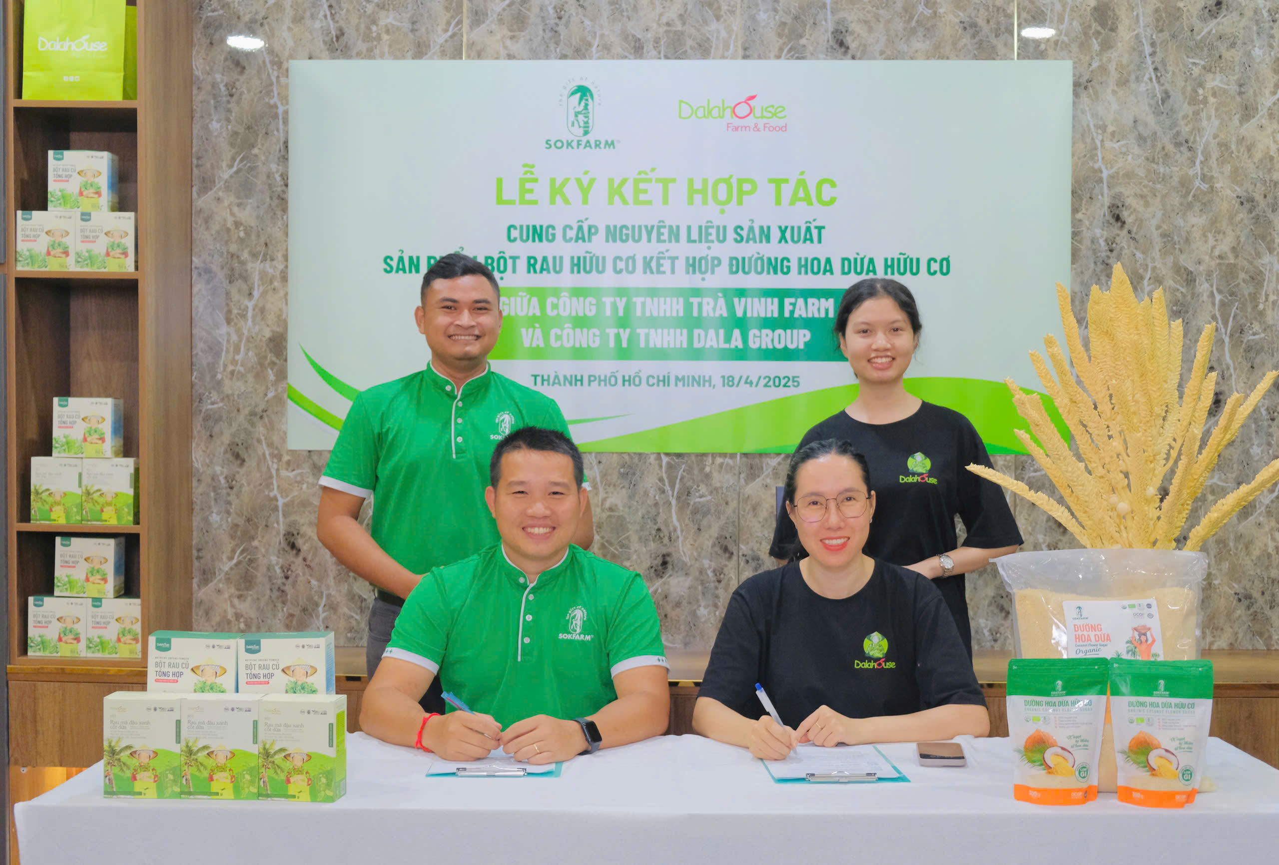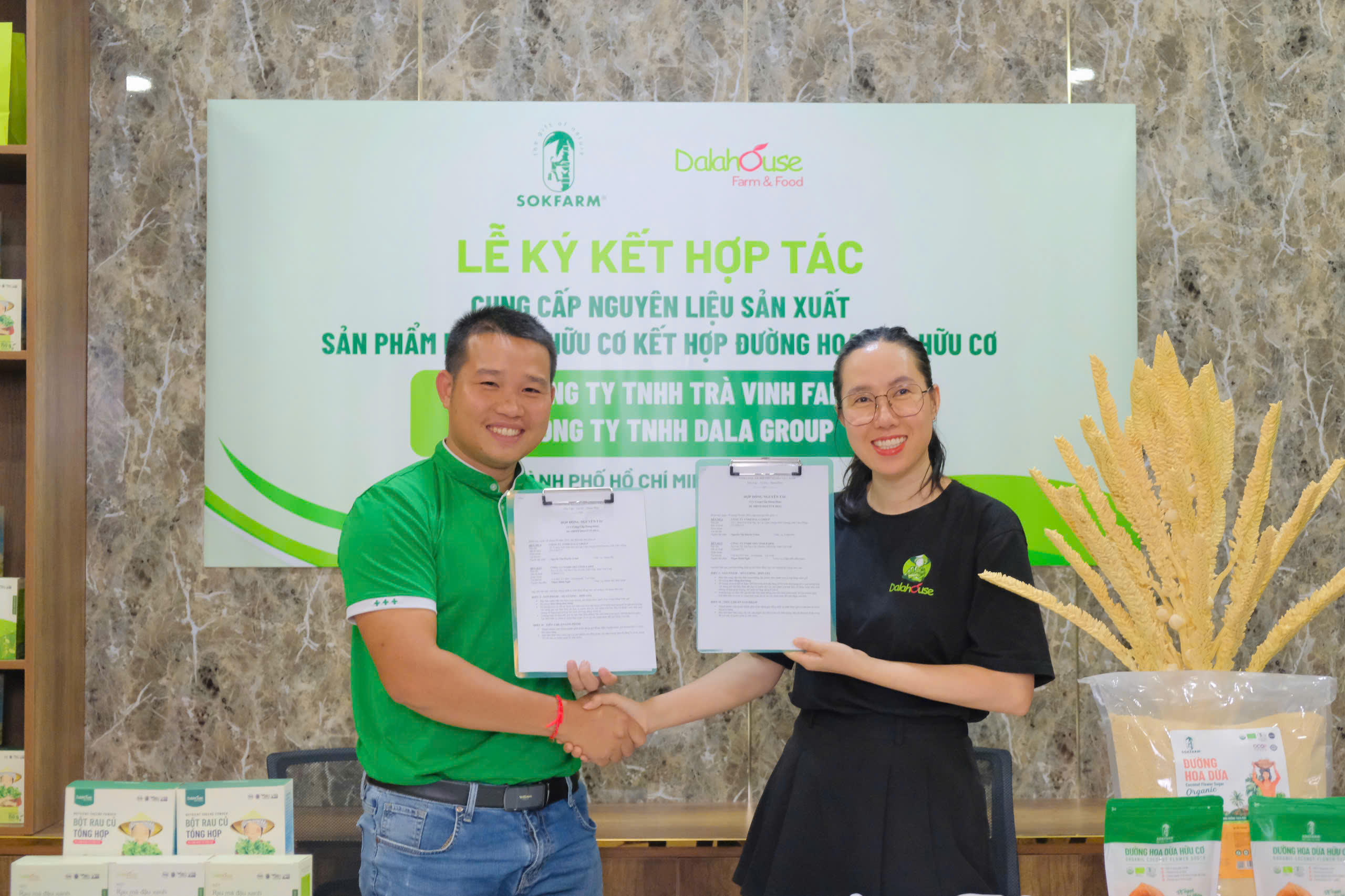 Buổi lễ ký kết hợp tác giữa Công ty TNHH Dala Group (Dalahouse) và Công ty TNHH Trà Vinh Farm (Sokfarm) được diễn ra vào ngày 18/04/2025 chính thức đánh dấu sự hợp tác bền vững giữa hai doanh nghiệp bền vững, nâng cao nội lực sản xuất trong nước.